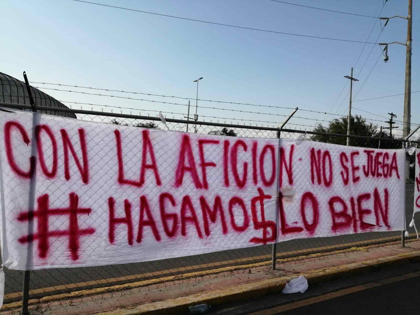 "Lárgate Hugo", "Con la afición no se juega, hágamoslo bien", "Fuera Manos Guangas", fueron algunos de los mensajes que aparecían en esas mantas.
