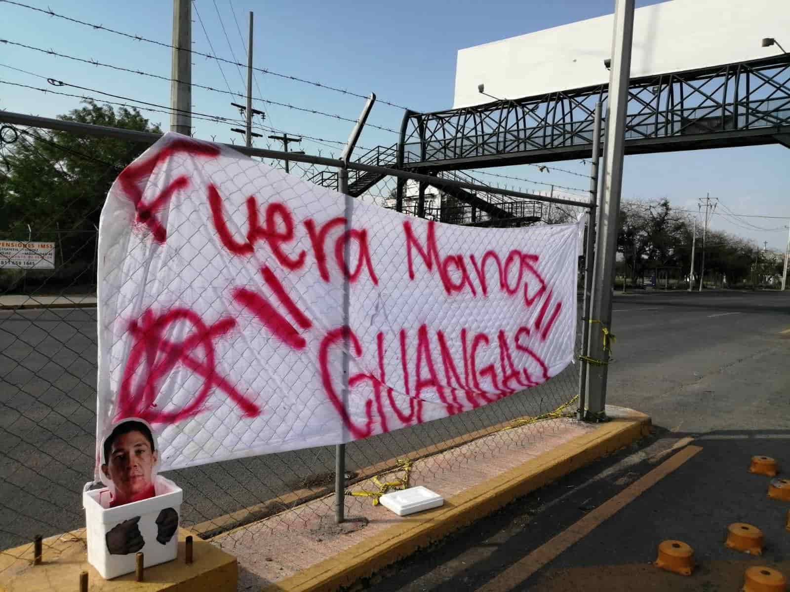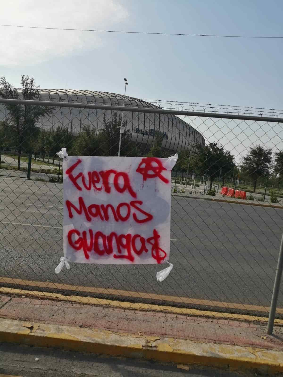 Ahora no solo fue a través de Twitter con el hashtag de "#FueraManosGuangas", todo eso pasó las redes sociales y se trasladó en mantas colocadas en las inmediaciones del Gigante de Acero en dónde pedían la salida de González.