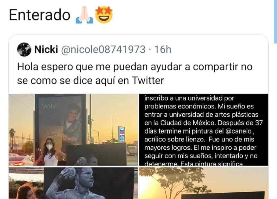 El trabajo de Nicole se hizo viral en las redes sociales y el boxeador mexicano le dió a entender que le comprara una de sus maravillas de arte, siendo que esta vendría siendo en la que él aparece.