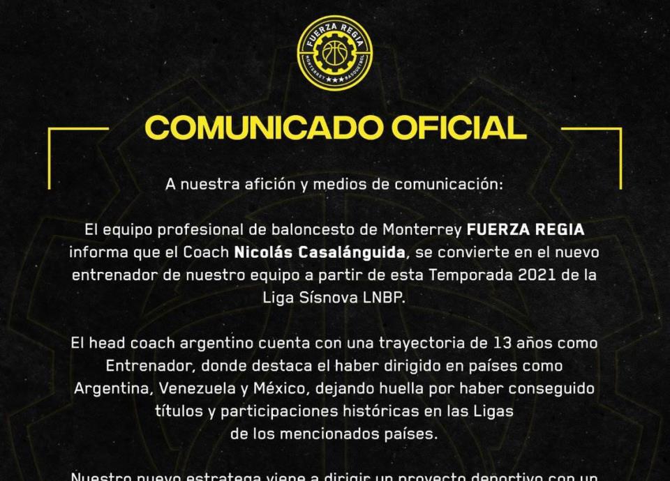 El conjunto de Fuerza Regia aspirará al bicampeonato en la próxima LNBP, aunque ahora intentarán conseguirlo con este entrenador.