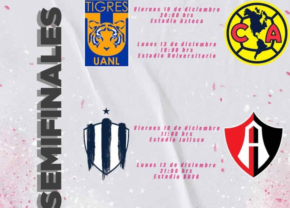 Los dos partidos se jugarán el 10 y 13 de diciembre respectivamente, siendo que el viernes, América recibirá a Tigres y Atlas a Rayados, en dónde las azulcremas serán locales ese día a las 20:00 horas en el Estadio Azteca y las rojinegras jugarán más temprano, a las 11:00 horas de la mañana en el Jalisco.