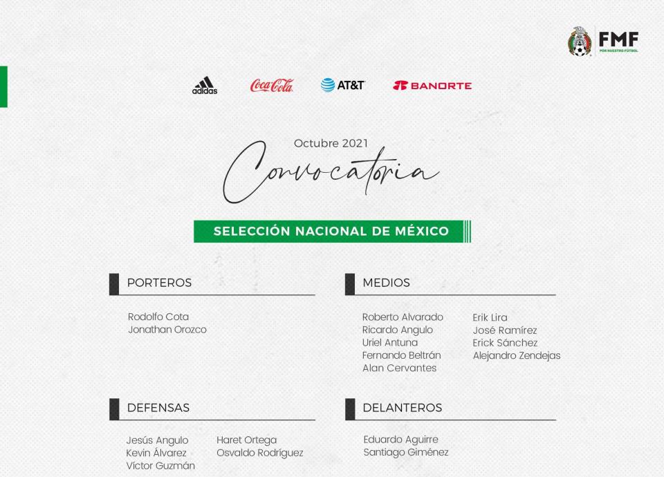 El conjunto nacional dio a conocer la lista de futbolistas que fueron convocados para el amistoso del 27 de octubre y tampoco en ella aparece alguno del Club América, aunque tampoco de Tigres si se hace énfasis de Rayados y felinos como los equipos locales.