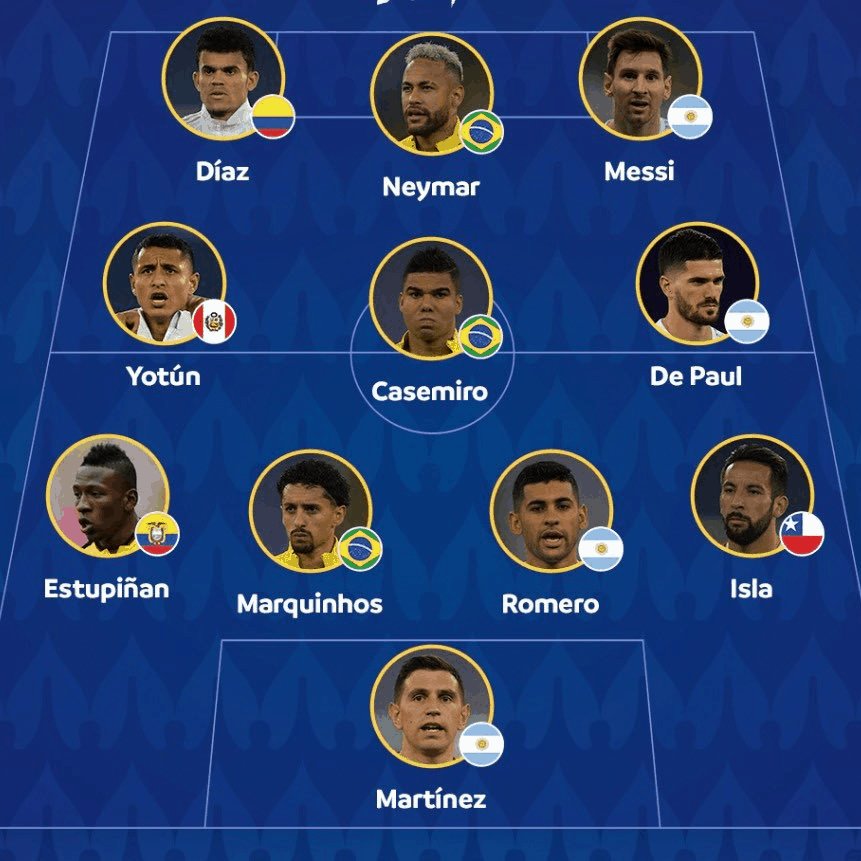 La Copa América dio a conocer el once ideal de su certamen que se realizó hace unos días y acabó con el título de Argentina sobre Brasil en el Maracaná.