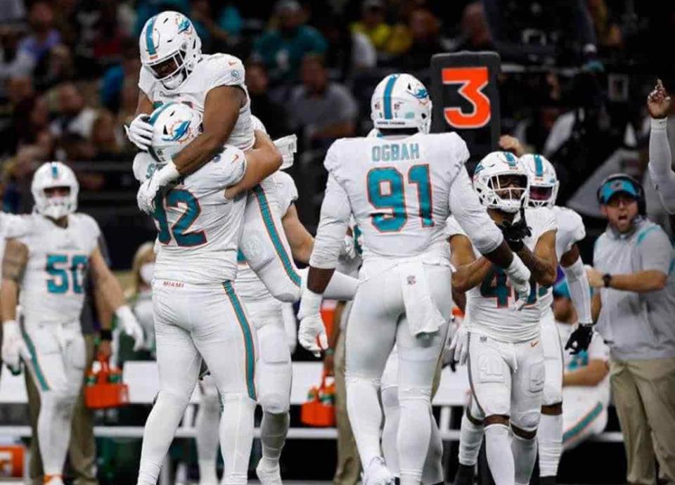 Los Delfines de Miami derrotaron por marcador de 20 puntos a 3 a los Santos de Nueva Orleans y con ello se metieron a la lucha por los playoffs.
