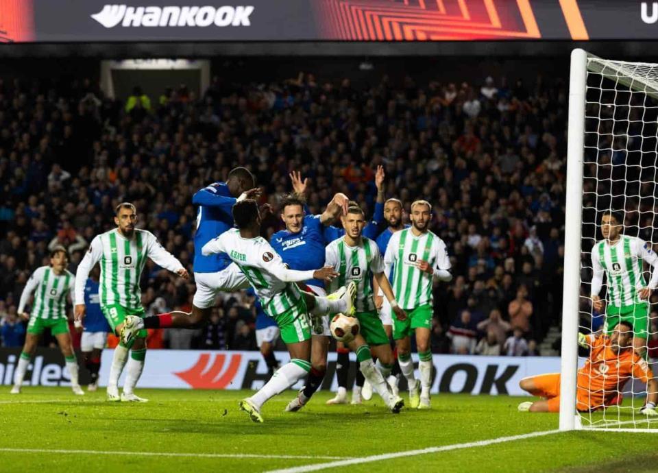 El Betis y el Rangers disputando el partido de la Europa League. Foto: Twitter.