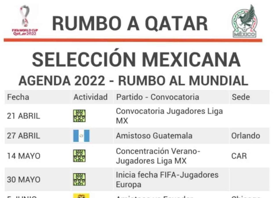 Eso servirá como preparación para tener amistosos el 5 y 8 de junio ante Ecuador y Uruguay respectivamente, primeramente en Chicago y después en otra ciudad americana que está por definirse.