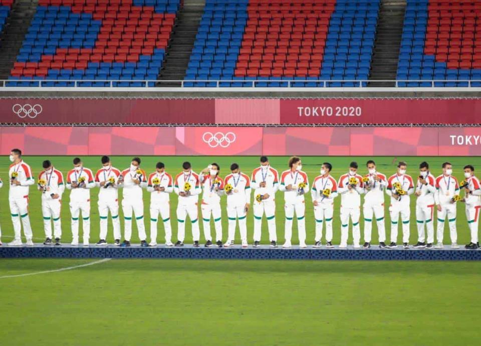 Los 22 convocados por Jaime Lozano subieron al podio conforme al número que portaron en el torneo y, debido a los protocolos sanitarios por la pandemia de Covid-19, ellos mismos se colocaron las preseas de par en par.