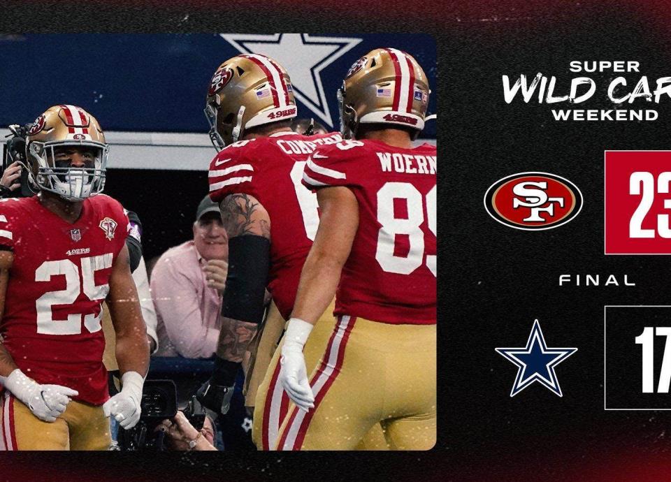 Los San Francisco 49ers vencieron 23-17 a los Vaqueros de Dallas en el ATT Stadium, todo esto para ganar de visitantes en territorio vaquero y eliminar al cuadro de los Cowboys en la ronda de comodín de los playoffs de la NFL.