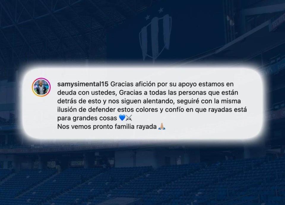 "Gracias afición por su apoyo y estamos en deuda con ustedes, gracias a todas las personas que están detrás de esto y nos siguen alentando, seguiré con la misma ilusión de defender estos colores y creo que las Rayadas estén para grandes cosas", publicó la antes citada en redes sociales.