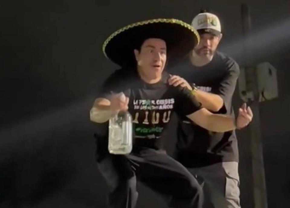 Efraín apareció con un sombrero de charro y con una botella de alcohol, que posiblemente era la tradicional bebida de aquel país sudamericano, el aguardiente.