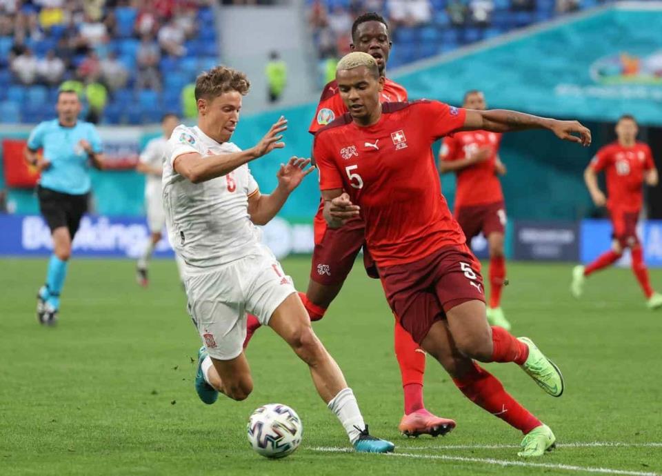 Suiza vino de atrás en el segundo tiempo para empatar el partido, sin embargo una expulsión al minuto 77 complicó sus aspiraciones, tuviendo que aguantar los embates españoles.
