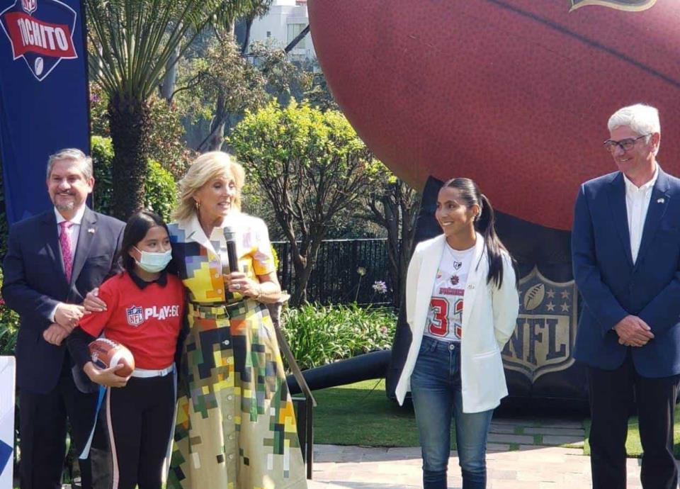 Jill, esposa de Joe Biden, el presidente de los Estados Unidos, visitó el día lunes a la NFL en México y lo hizo en un evento de tochito.