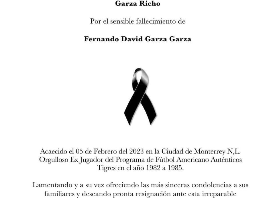 Fernando David Garza, ex jugador de los Auténticos Tigres de la UANL en las temporadas 1982 a la de 1985, ha fallecido.