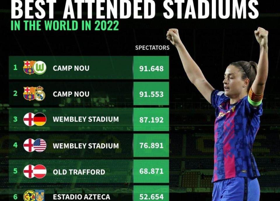 El Barcelona vs Wolfsburgo de la Liga de Campeones de la UEFA Femenil fue el partido con más asistencia en el 2022 dentro del futbol femenino, todo esto con un total de 91 mil 648 personas que se dieron cita en el Camp Nou.