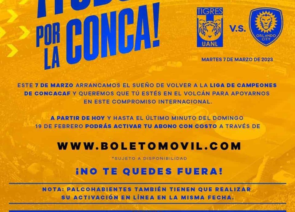 La activación de abonos para el juego de Octavos de Final de Ida en la Liga de Campeones de la Concacaf por parte de Tigres ya comenzó.