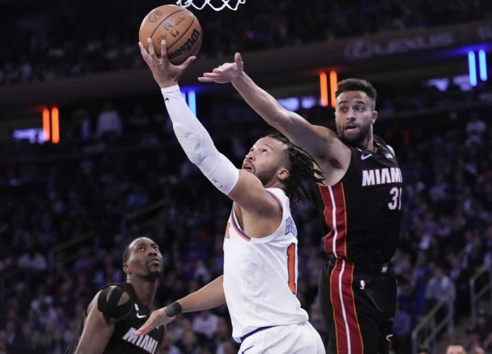 Jalen Brunson consiguió 30 puntos y encendió justo a tiempo el ataque que requerían los Knicks de Nueva York para vencer el martes 111-105 al Heat