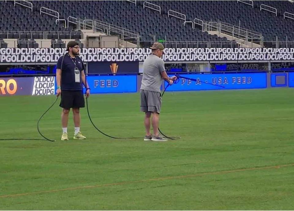 Al mediodía de este viernes, en el AT&T Stadium todavía trabajaban para terminar de instalar césped para el inicio del torneo de la Concacaf