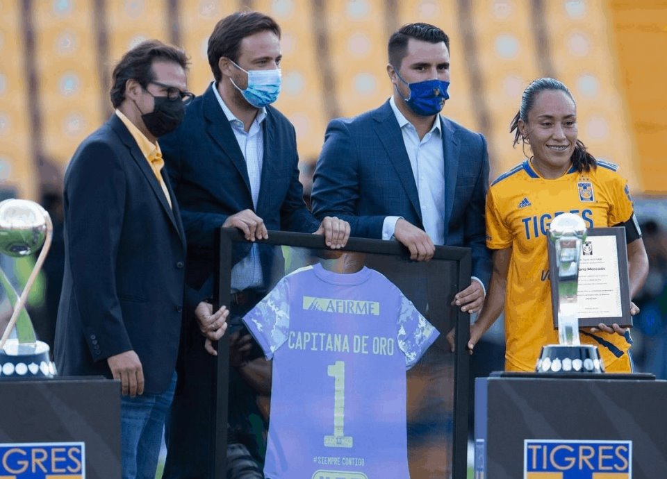 "Gracias @TigresFemenil por el reconocimiento y por permitirme defender estos colores desde que inició la Liga. Es un honor para mí el ser parte de este equipo y de formar parte de la mejor afición de México.