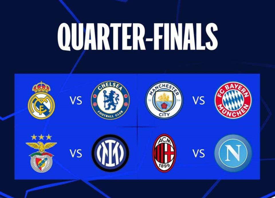 La escuadra merengue enfrentará al Chelsea, teniendo la ida en el Bernabéu y la vuelta en Londres, mientras que el Manchester City enfrentará al Bayern, además de que el AC Milán jugará en contra del Napoli y el Inter en contra del Benfica.