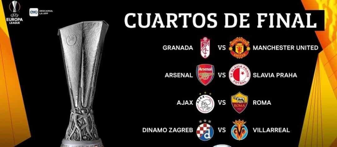 Los duelos de ida en estos cuartos de final se jugarán el próximo 8 de Abril y en ellos el Arsenal será local frente al Slavia Praga, el Granada recibirá al Manchester United, el Ajax a la Roma y el Dinamo de Zagreb al Villareal.