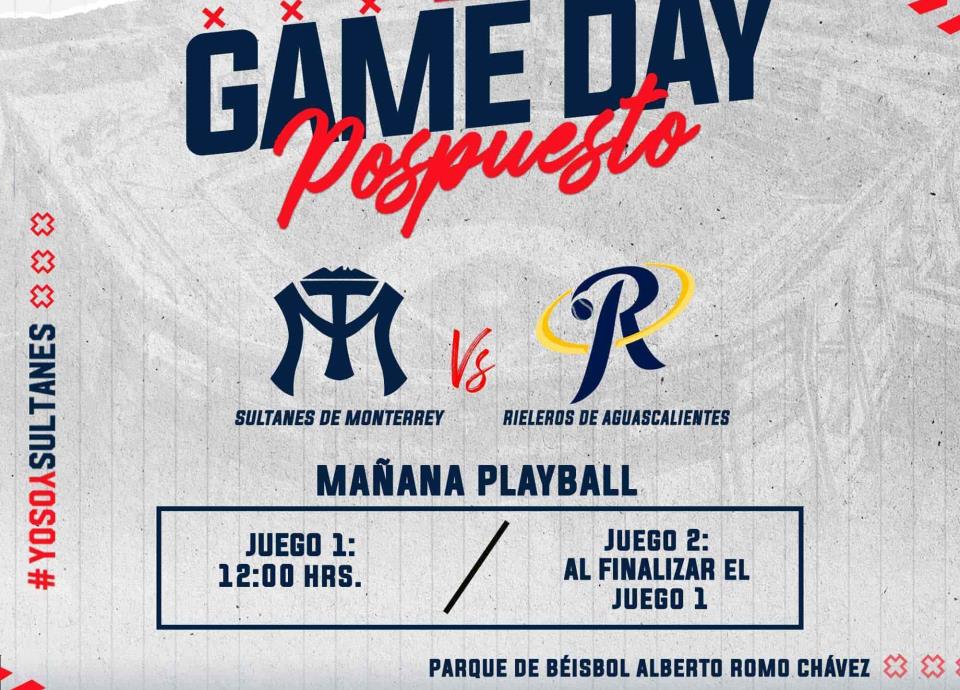 El segundo juego de la serie a disputarse el día de hoy en Aguascalientes entre Sultanes y los Rieleros quedo pospuesto debido a la fuerte lluvia que se presenta en este estado del centro del país.