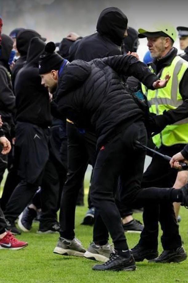 Los elementos de seguridad y la policía evitaron que aficionados de ambos clubes se enfrentaran a golpes en el campo de juego del estadio Ibrox Park, en los cuartos de final de la Copa de Escocia.