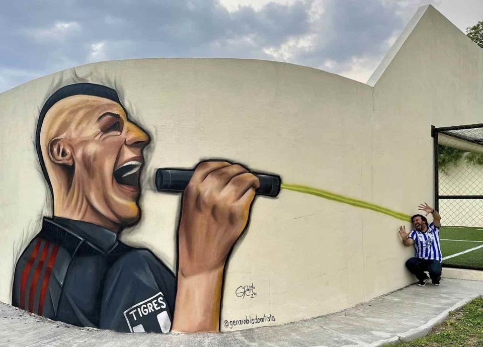 De hecho, en el municipio de Villaldama es en el que se plasmó, a través de un mural, ese momento en el que Nahuel Guzmán le está apuntando con un láser al cancerbero del Club de Futbol Monterrey.