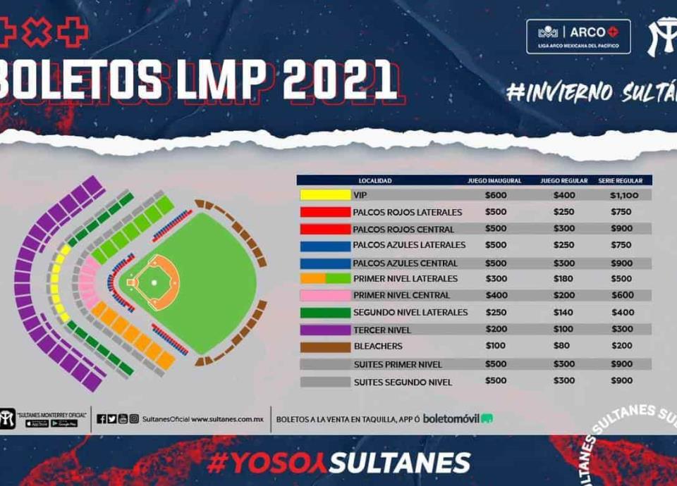 Los Sultanes de Monterrey debutarán en su tercera temporada dentro de la Liga Mexicana del Pacífico a partir del 5 de octubre cuando enfrenten de visitantes al conjunto de los Charros de Jalisco, siendo que ante este rival, bajo precios muy económicos pero un día después, el 6 del mencionado mes, tendrán su inauguración en el Palacio Sultán.
