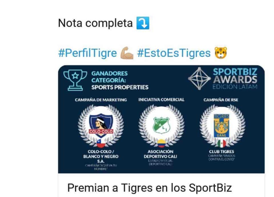 Tigres superó a clubes como el Flamengo de Brasil, Racing Club de Avellaneda, Fernández Vial de Chile y el Córdoba ATP Open de Argentina, siendo los felinos los elegidos por un jurado conformado por prestigiosos profesionales y por votación de la gente por redes sociales.
