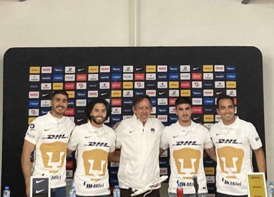 Acompañados de Miguel Mejía Barón, uno de sus directivos y otros dirigentes de la UNAM, los cuatro refuerzos de Pumas fueron presentados el día jueves ante los medios de comunicación.