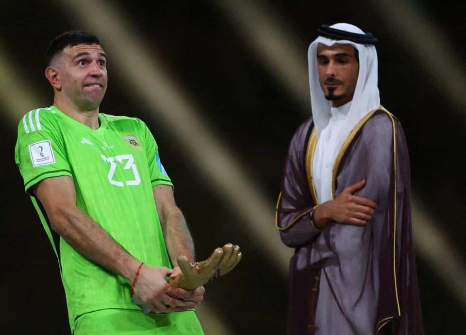Al final, el gesto de Martínez fue el de ponerse el premio que lo reconoció como el mejor portero de la Copa del Mundo en medio de sus piernas y simular así una señal totalmente obscena, además de burlesca.