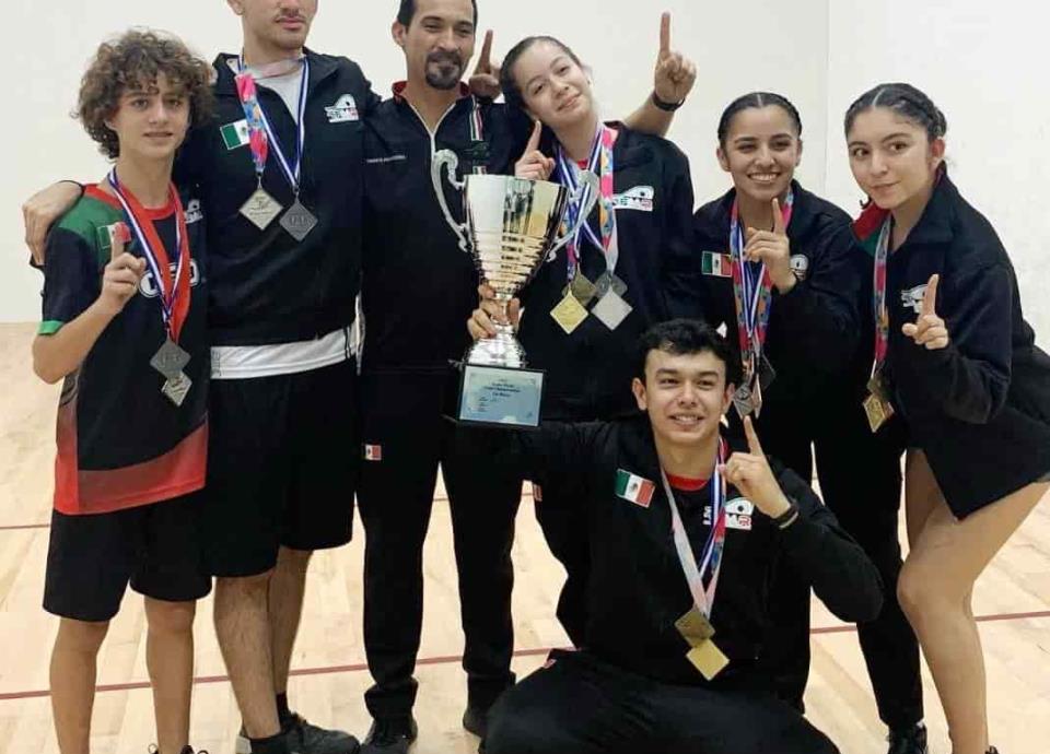 aportó 11 medallas para México en las categorías infantil y juvenil, de las 41 totales que se consiguieron dentro del Campeonato Mundial de la especialidad, que se llevó a cabo en el Domo Polideportivo de la Ciudad de Guatemala.La Delegación mexicana conquistó 18 oros, 12 Platas y 11 Bronces, para culminar el evento como el campeón mundial por equipos por decima cuarta vez en su historia.Los deportistas nuevoleoneses que brillaron en el certamen fueron: Lilia Regina Farías, categoría 12 y menores rama femenil, 2º lugar en Singles y 1er lugar en Dobles (con Natalia Guillen de Tamaulipas).Ángela Verónica Ortega Sabido, categoría 16 y menores rama femenil, 3er lugar en Singles y 2º lugar en Dobles (con Cinthia Gutiérrez); Ximena Alejandra Martínez Pérez, categoría 18 y menores rama femenil, 3er lugar Singles y 1er lugar en Dobles (con Daniela Rico de Chihuahua).Así como, Erick Leonardo Trujillo Coronado, categoría 18 y menores rama varonil, 1er lugar en Singles; Sebastián Longoria Suárez, categoría 18 y menores rama varonil, 2o lugar en Singles; y Luis Castelltort, categoría 12 y menores rama varonil, 2º lugar en Singles.Por supuesto también se agregan las medallas de oro conseguidas por las máximas referentes en la rama femenil, Paola Longoria en Singles y Dobles (su 4º campeonato mundial y su 112 general) y Samantha Salas en Dobles junto con Longoria.Yanko Rentería, técnico de Selección Nuevo León de Raquetbol mencionó, “fue una excelente participación de toda la delegación mexicana, la competencia estuvo muy dura, los equipos de Guatemala y Bolivia, fueron muy fuertes, pero se hizo un gran trabajo, los atletas durante todo el torneo fueron muy constantes”.Dijo que después del mundial de Guatemala en este año; en el mes de febrero del 2022, se enfocarán en el selectivo para asistir a la Copa Panamericana que se llevará a cabo en Santa Cruz Bolivia. Agregó también que debido al gran nivel que han adquirido sus pupilos, Ximena, Erick y Sebastián, se perfilan para participar más adelante en las ligas internacionales de Raquetbol Profesional.Finalizó agradeciendoal presidente de la Asociación de Raquetbol del estado, Alejandro Romero y al INDE Nuevo León por todo el apoyo y las facilidades brindadas.
