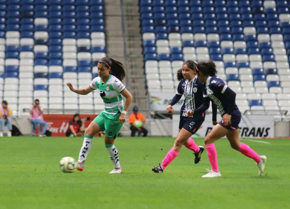 Pero ya en lo que respecta al juego, Santos se fue adelante en el marcador cuando la portera Claudia Lozoya se equivocó en el área chica al momento de querer despejar el balón, todo esto para tras ello dejar el balón a merced a la jugadora Alexia Villanueva y esta mandó el balón al fondo de las redes, al 32' para el 1-0.