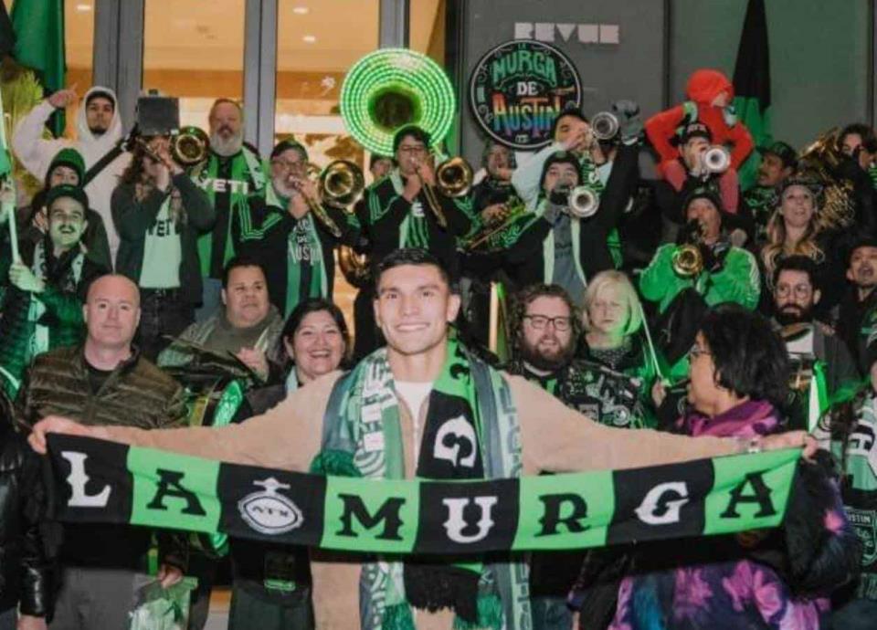 Seguidores del Austin acudieron a recibir a su nuevo jugador Brandon Vázquez, ex delantero de los Rayados.