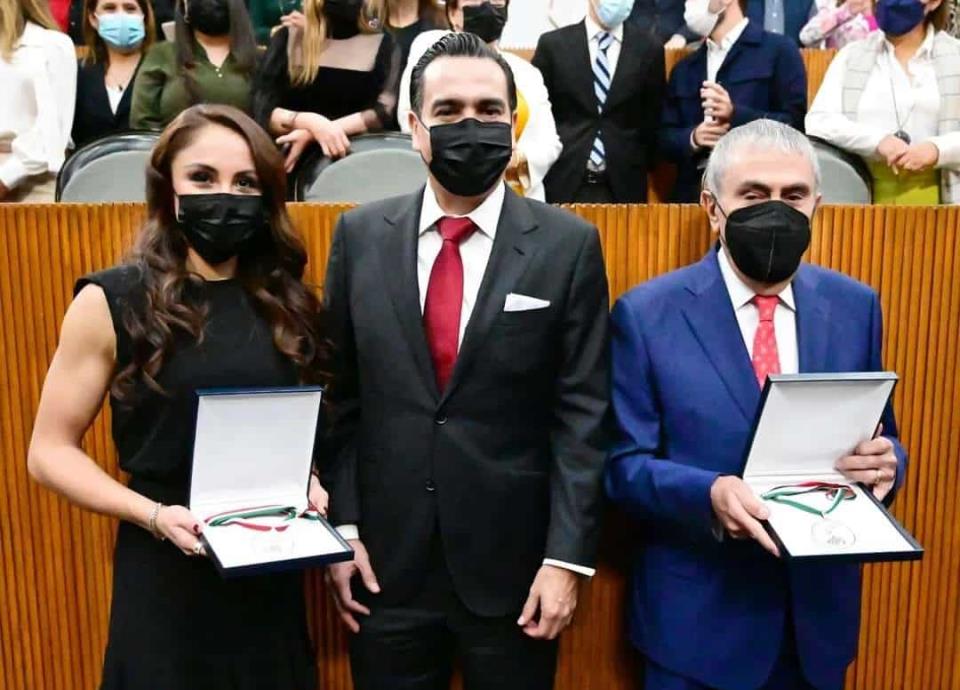 El Congreso del Estado de Nuevo León, con la medalla Fray Servando Teresa de Mier, reconoció al ingeniero y Paola Longoria por su extraordinaria carrera deportiva.
