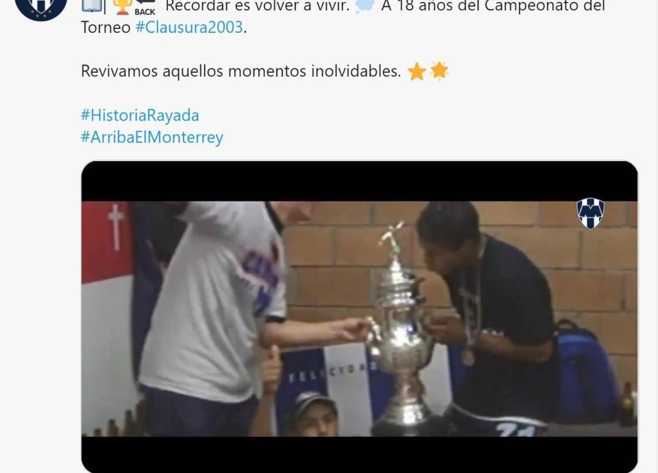 "Historia Rayada: Un día como hoy, 14 de junio, pero del 2003, nos coronamos Campeones del Torneo Clausura 2003. ¡18 años de la segunda estrella!", destacó Rayados en sus redes sociales.
