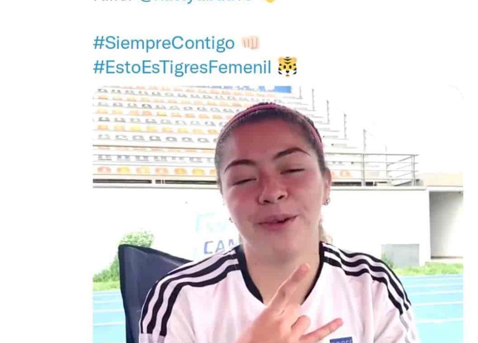 Luego de padecer de una lesión durante el viernes pasado frente a Chivas en el Estadio Akron de Jalisco, de ser baja para el TRI Femenil por sus problemas musculares y de creerse que tardaría más tiempo en recuperarse, finalmente la futbolista felina ya está mucho mejor de su lesión y el jueves 21 de octubre estuvo en el entrenamiento de Tigres Femenil, saludando a la afición a través de un vídeo.