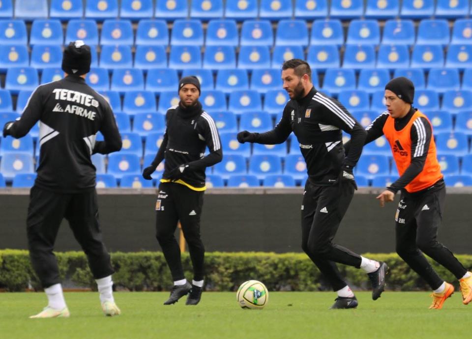 Nahuel Guzmán; Jesús Garza, Igor Lichnovsky, Samir Caetano, Jesús Angulo; Guido Pizarro, Rafael Carioca, Fernando Gorriarán; Luis Quiñones, Javier Aquino y André Pierre Gignac fue el equipo titular en Tigres durante la práctica del jueves.