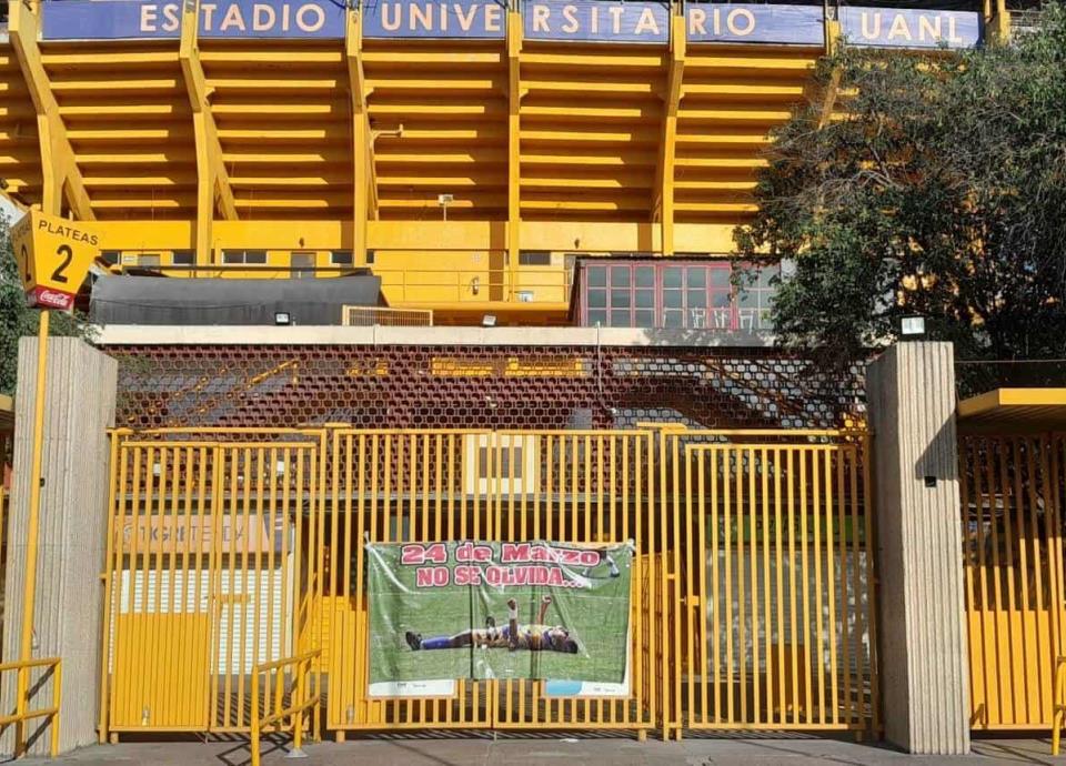 Algunas pancartas aparecieron a las afueras del Estadio Universitario con la frase del "24 de marzo no se olvida"