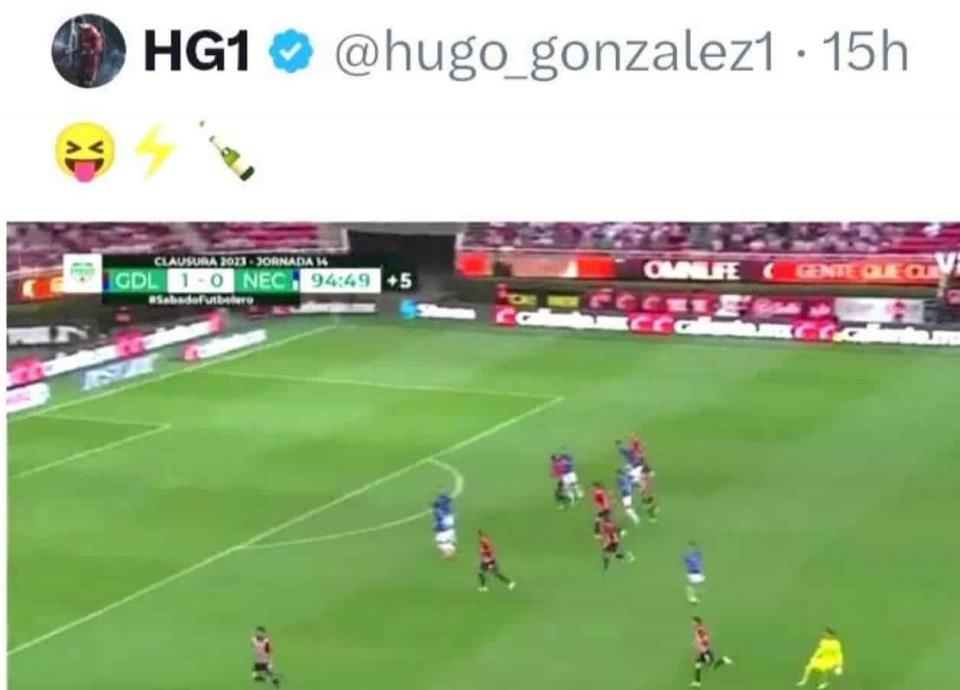González publicó un vídeo en su cuenta de Twitter en el que sale a cortar de manera correcta un balón a mediocampo como portero del Necaxa y en el duelo del sábado anterior que fue ante las Chivas Rayadas del Guadalajara, siendo esa situación una que no logró el futbolista Esteban Andrada, arquero que a diferencia a Hugo, él salió a destiempo en una jugada parecida y se fue expulsado.