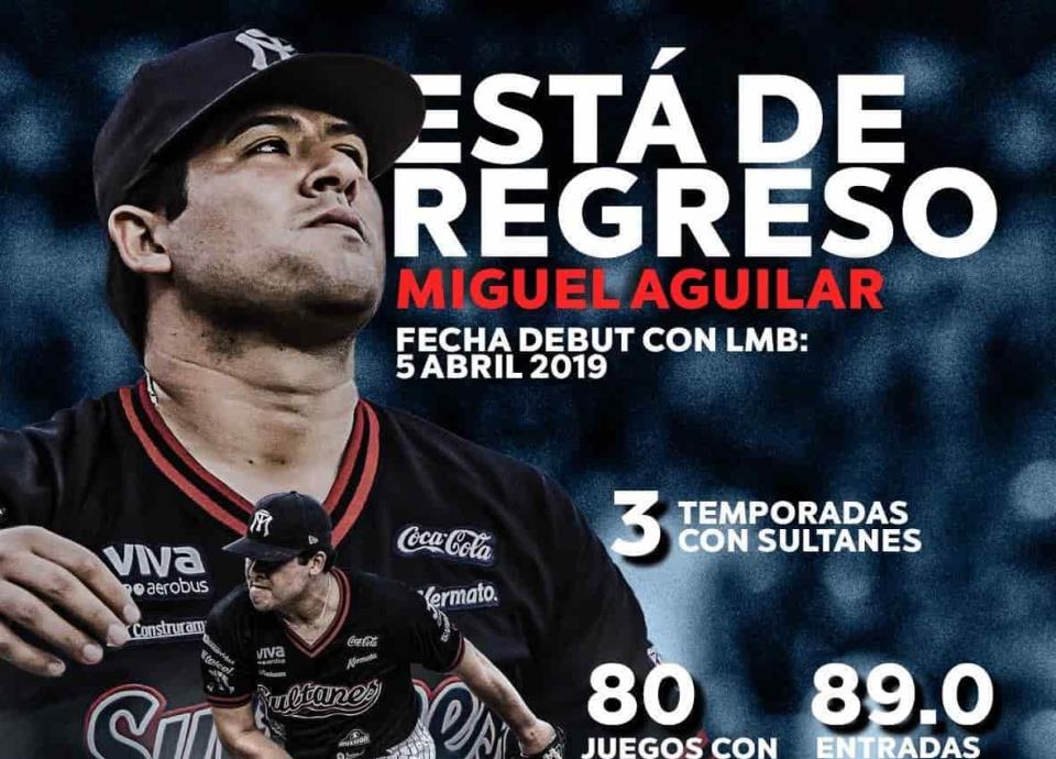 Ahora el conjunto regio ha adquirido a un confiable pitcher cómo el lanzador Miguel Aguilar.Aguilar tendrá en este año su cuarta temporada con los Sultanes de Monterrey, teniendo hasta estos momentos un total de 80 juegos ya disputados con los regios, hasta 89 entradas lanzadas y también 58 ponches recetados.Sultanes se sigue preparando para su primera serie de temporada regular en la Liga Mexicana de Beisbol que será en abril.Esa primera serie va a ser ante los Algodoneros de la Unión Laguna, todo esto durante los días 21, 22 y 23 de abril de este mismo año.