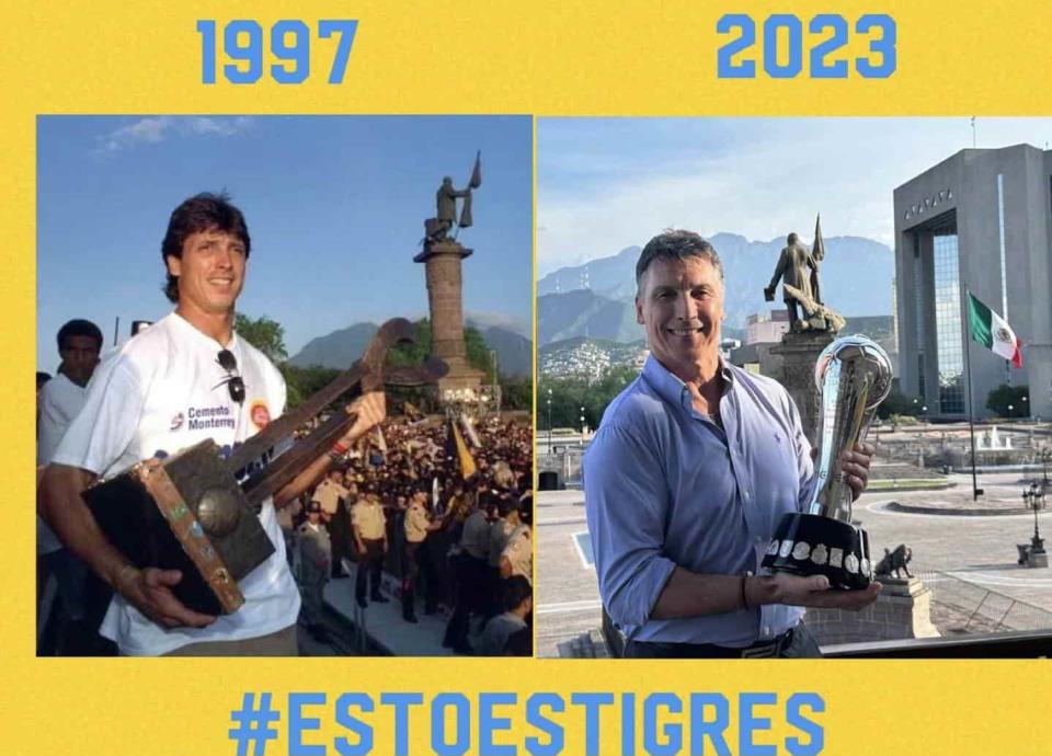 En ese momento se tomó aquella fotografía como jugador, aunque ahora lo hizo como entrenador de estos Tigres y con el título del Torneo Clausura 2023 de la Liga MX que logró el conjunto felino sobre las Chivas Rayadas del Guadalajara.