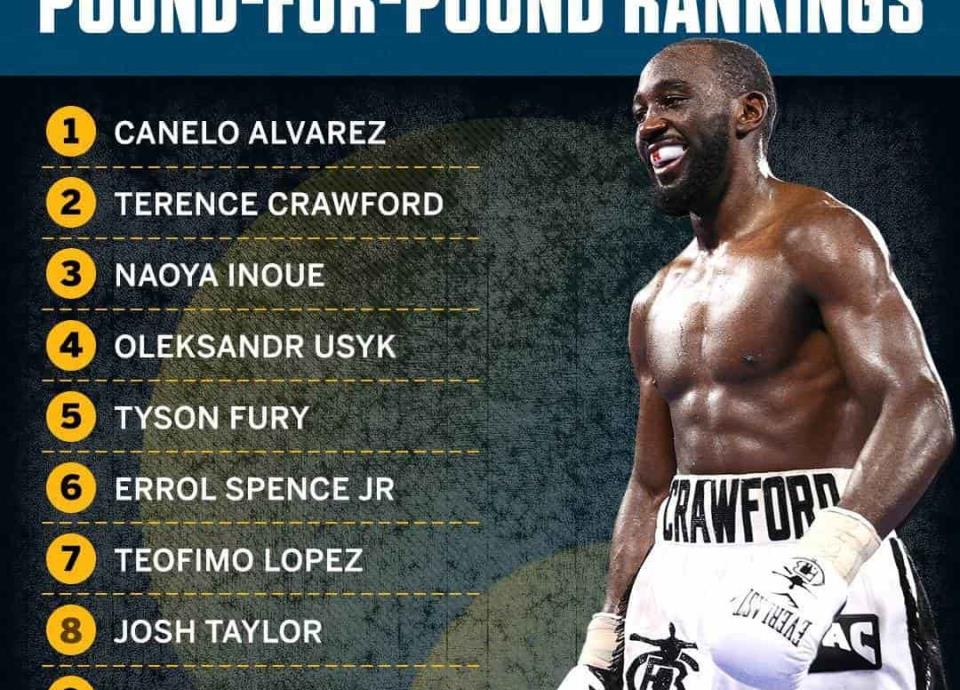 Después de Álvarez, nombres como los de Crawford, Inoue, Usyk, Fury, Spence JR, López, Taylor, Lomachenko y Estrada complementan el top 10.