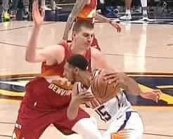 Los oficiales aplicaron una doble falta técnica a Jokic y Booker, y expulsaron al Jugador Más Valioso. Jokic terminó con 22 puntos y 11 rebotes en 28 minutos.
