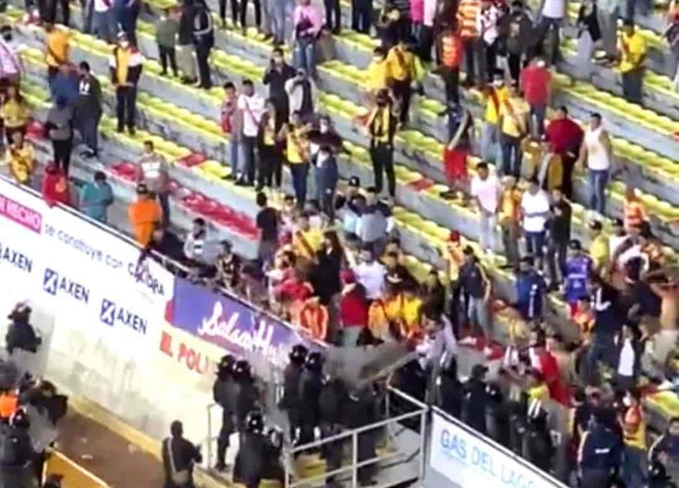 Cabe señalar que algunos aficionados del Morelia intentaron meterse a la cancha y fueron detenidos por los policías que estaban dentro del inmueble, siendo estos los que resguardaban la integridad física de los futbolistas.