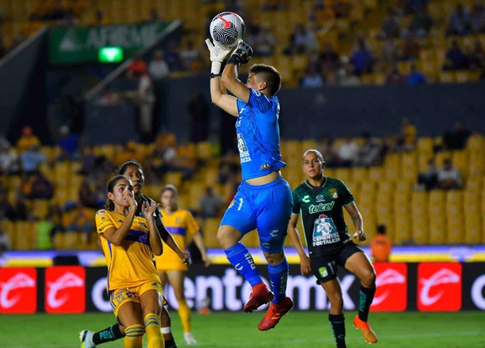 Pero ya en lo que respecta al juego, el León comenzó mejor en los primeros minutos y tuvieron algunas jugadas de gol, pero la portería de Tigres Femenil, en este caso Cecilia Santiago, estuvo atenta con buenas atajadas.