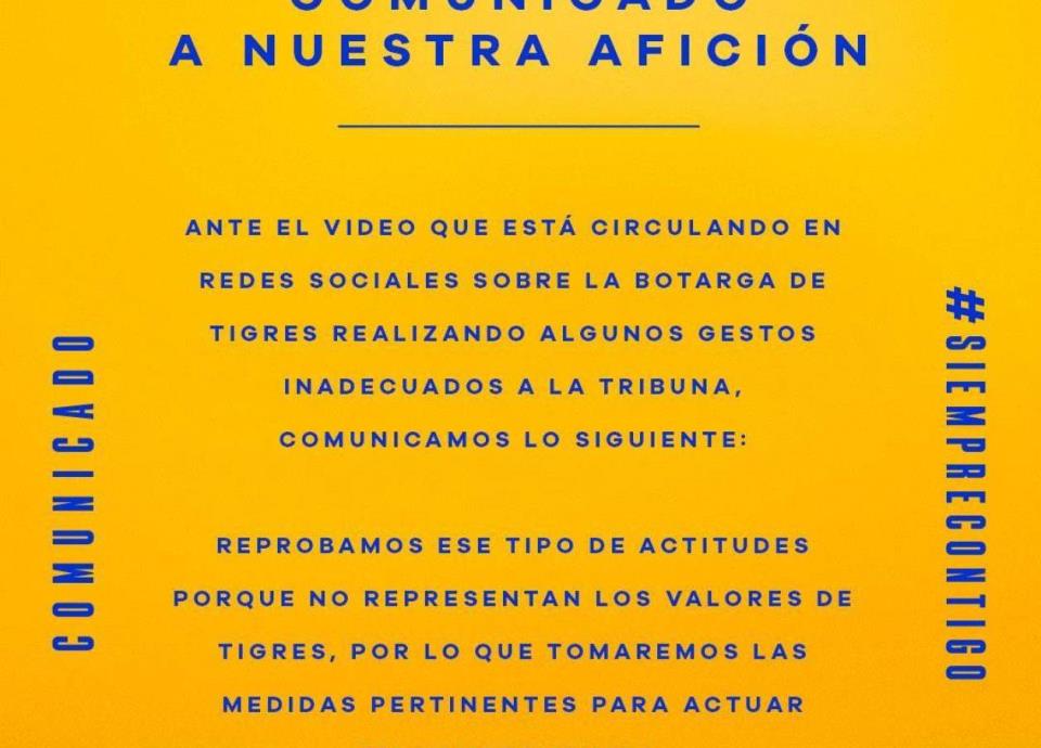Ante esta situación, en el Club Tigres lamentaron esa situación e informaron el domingo que tomarán medidas cautelares por esa situación.