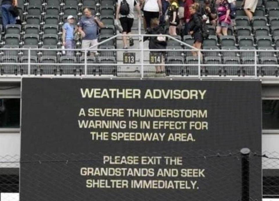Incluso los organizadores de la misma le pidieron a los 125 mil aficionados que estaban en el circuito el que se resguardaran en algún lugar para que no les cayera demasiada agua, posteriormente les reiteraron que tenían que salir del sitio.