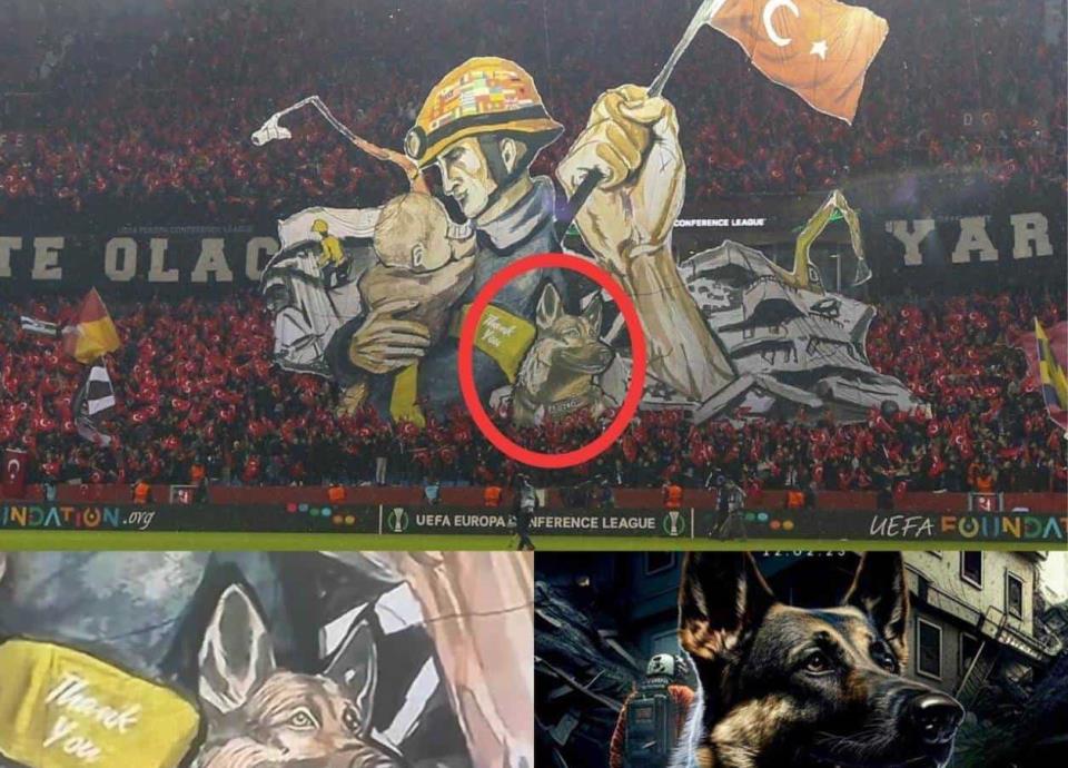 Ahí el equipo turco mostró un tifo a los cuerpos de rescate que han ayudado después del devastador terremoto que acabó con Miles de vidas en ese país.