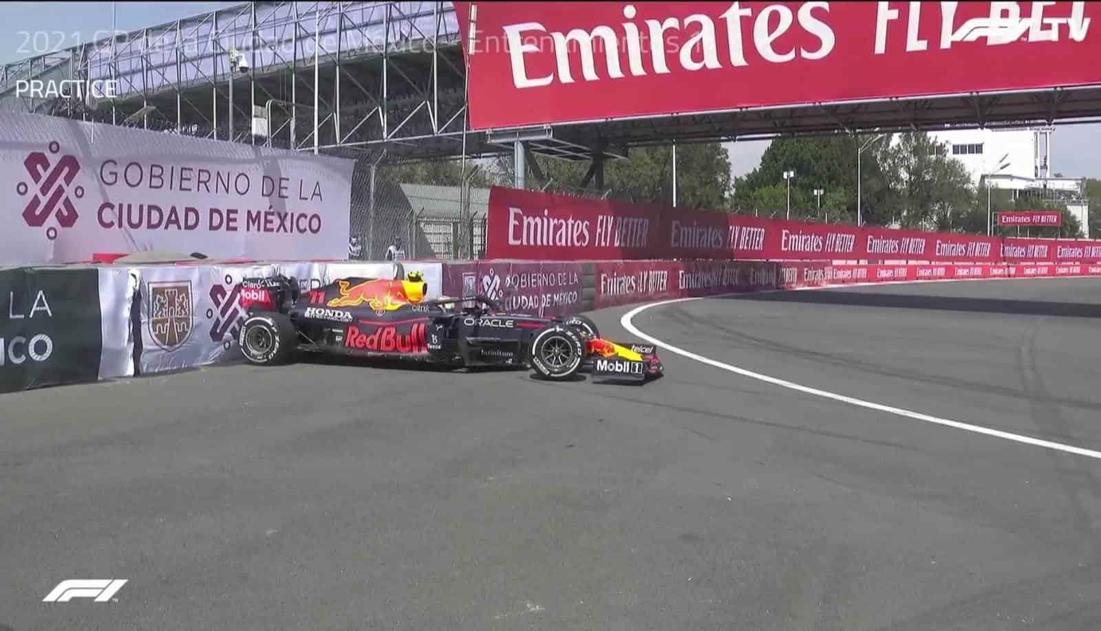 La cosa no inicio nada bien para el piloto mexicano Sergio Pérez, el mexicano tuvo un despiste en el inicio de la sesión saliendo de las curvas del Foro Sol impactando con el muro de protección con la parte de atrás de su Red Bull causándole daños en el alerón y parte trasera del vehículo.